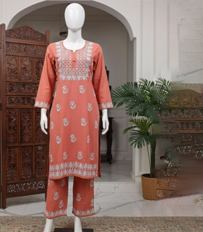 Floral Embroidered Straight Kurta Set